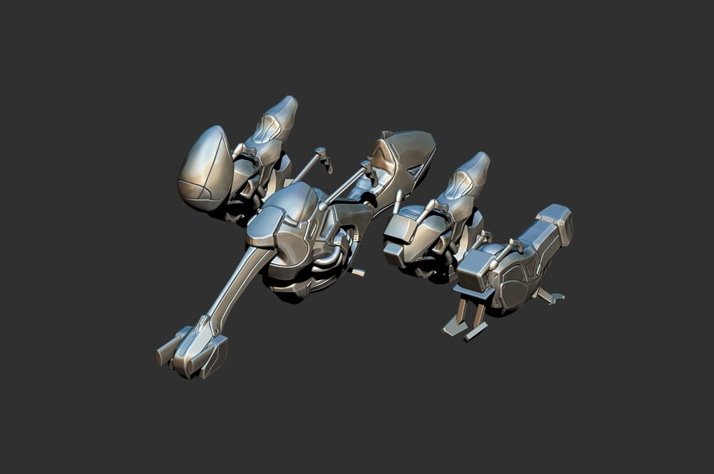 set of 3 types of bikes, chopper, racing/soprt and stardard + version of the sport model with visor. prefect for hobbyist, conversions, or using has misc on your wargames like Infinity.